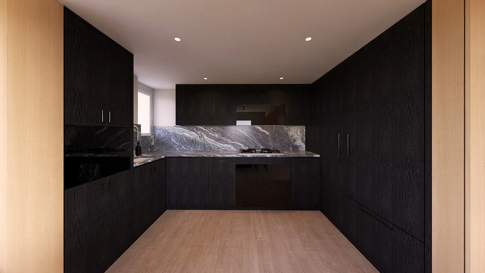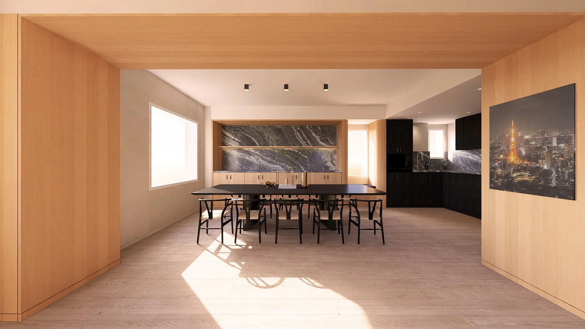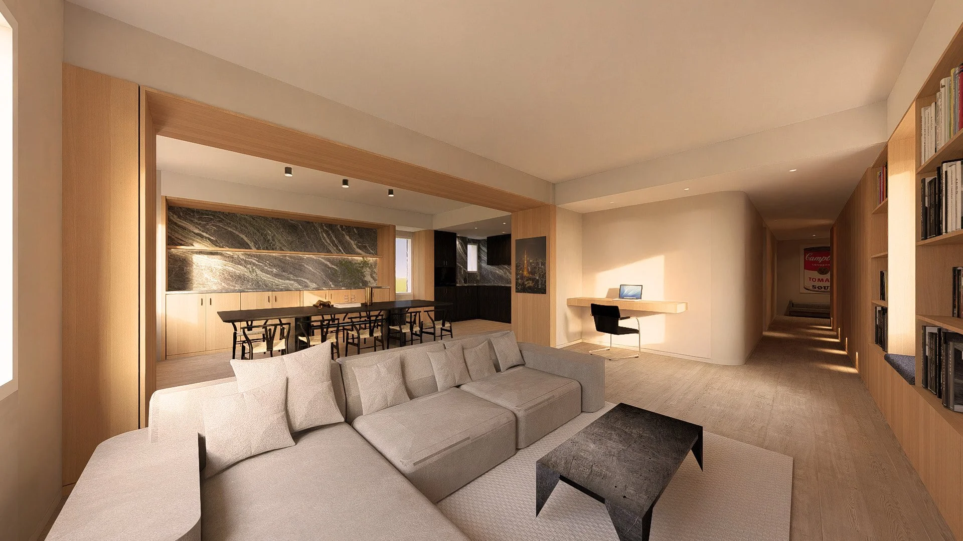 This modern residential renovation focuses on warm materials, integrated millwork, and an open-plan layout that enhances natural light and livability. The design unifies living, dining, and kitchen areas into one continuous space, supported by custom wood paneling, concealed storage, and refined detailing. Private rooms adopt the same handcrafted material palette, creating a cohesive, serene environment throughout the home.